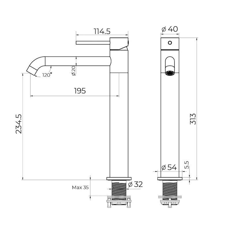 Смеситель для раковины высокий Knotlor SS-21, сатин