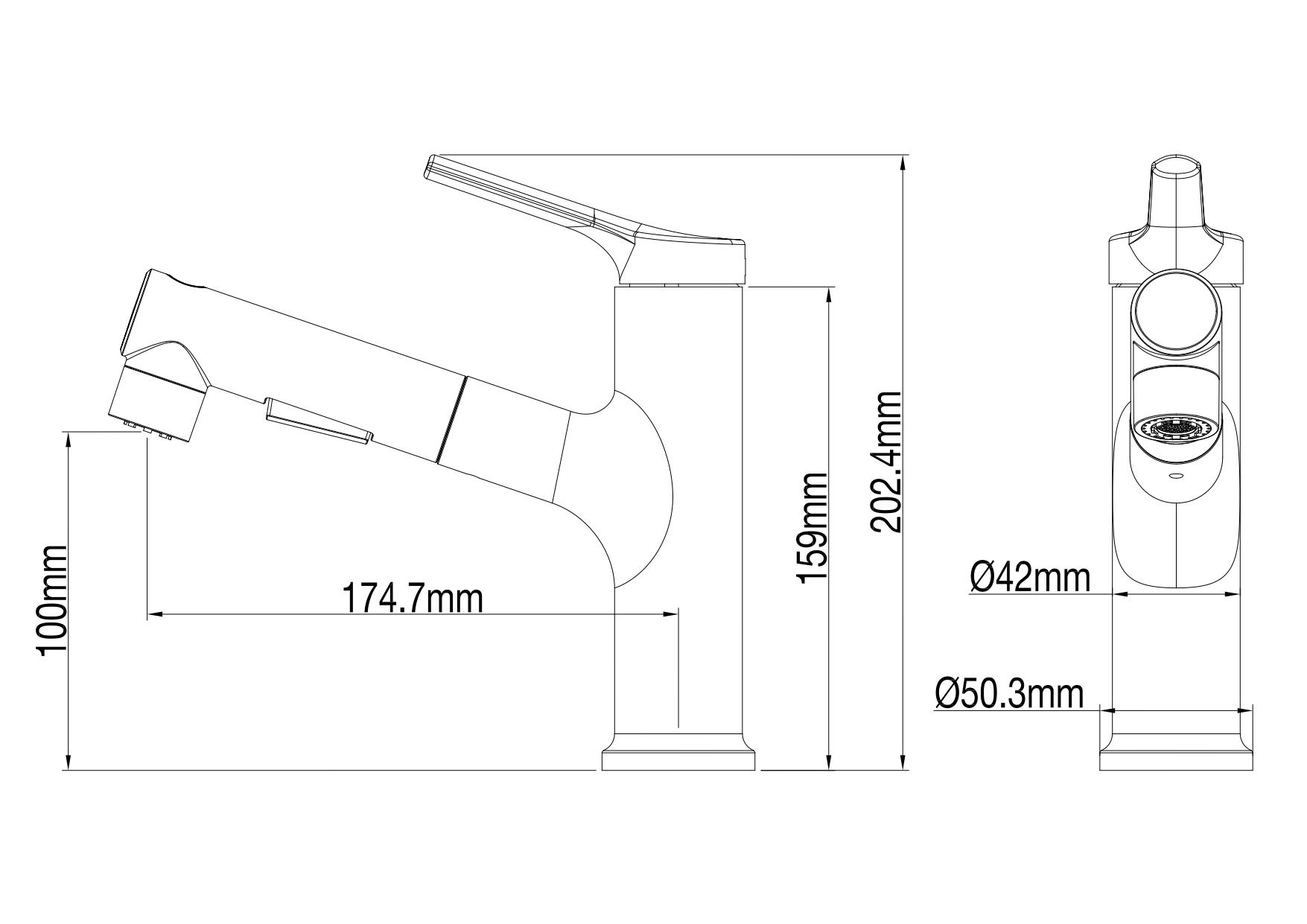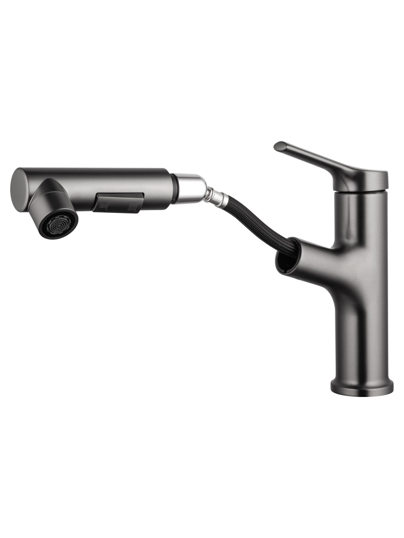 Смеситель для раковины Wonzon & Woghand WW-A40862-BGG с выдвижным изливом тёмный графит