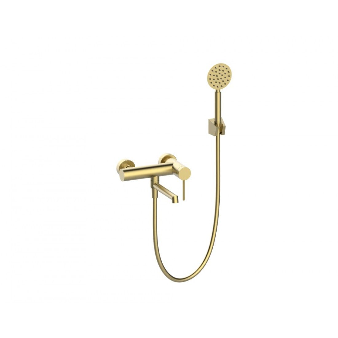 Смеситель для ванной с душем Vieir V463531-S короткий излив, нержавеющий стал матовое золото купить