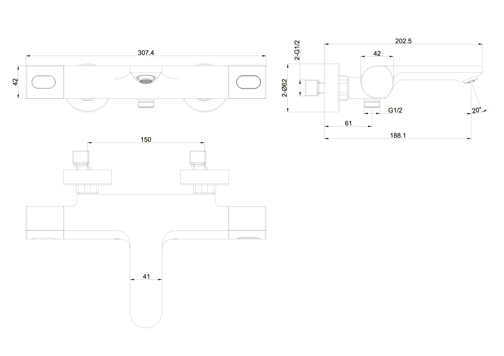- двухрычажная система регулировки силы струи и температуры воды
