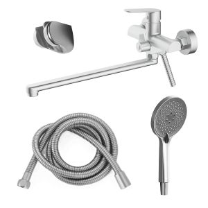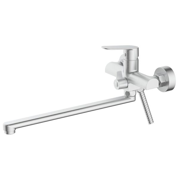 Смеситель для ванны Azario Alanti керамический картридж, длинный излив, с ручным душем, шланг 150 см, сатин (AZ-K1732BN)
