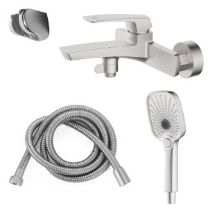 Смеситель для ванны Azario Conda с ручным душем, керамический картридж, шланг 150 см, сатин