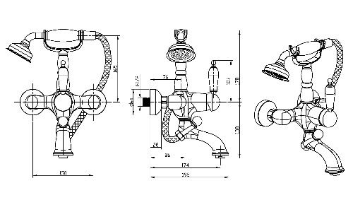 Смеситель для ванны Boheme (душ.комплект) TRADIZIONALE CHROMO_Комплект с черной керамикой хром