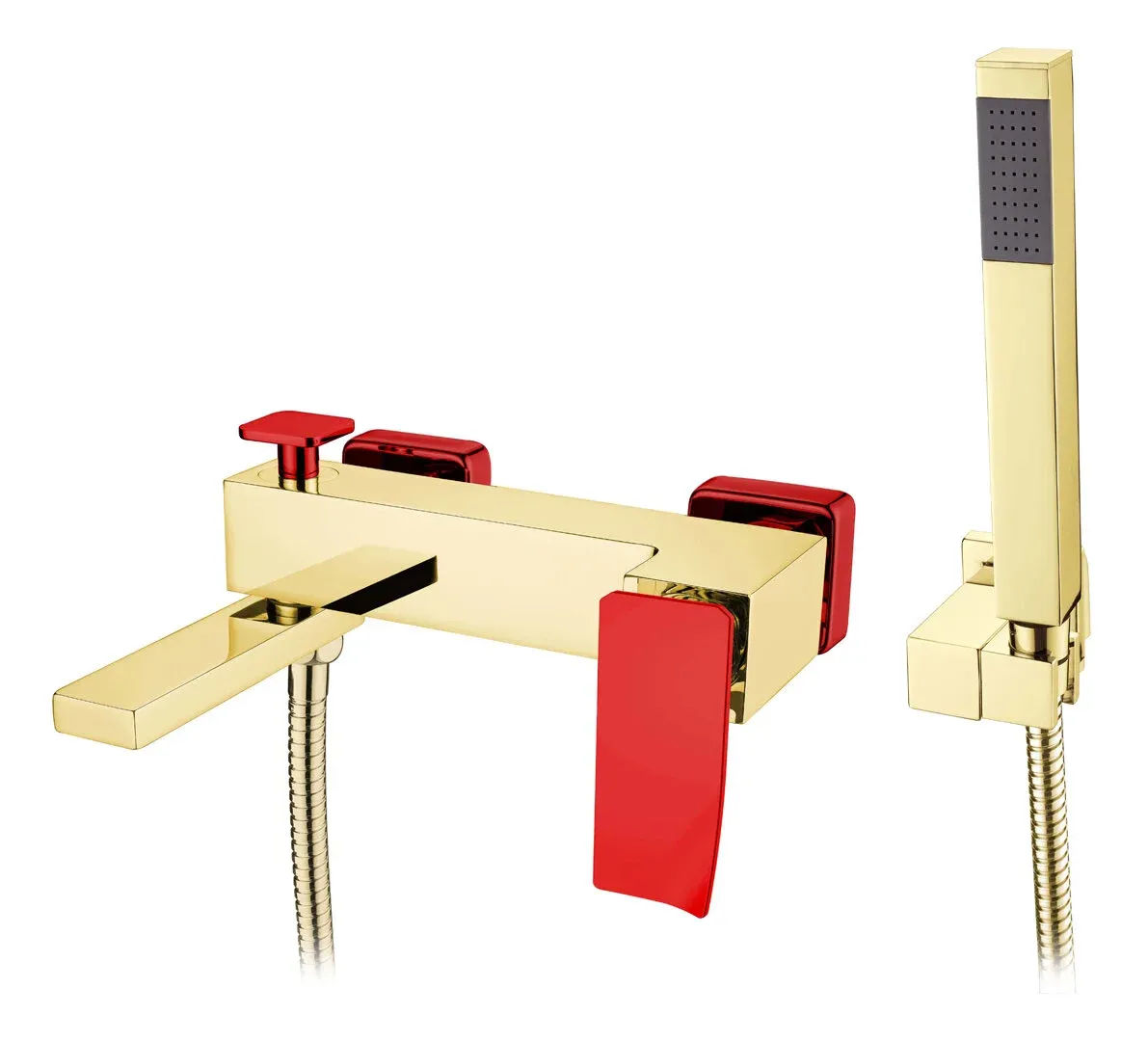 Смеситель Boheme Q для ванны, с душевым гарнитуром, золото, красный, 143-GR.2