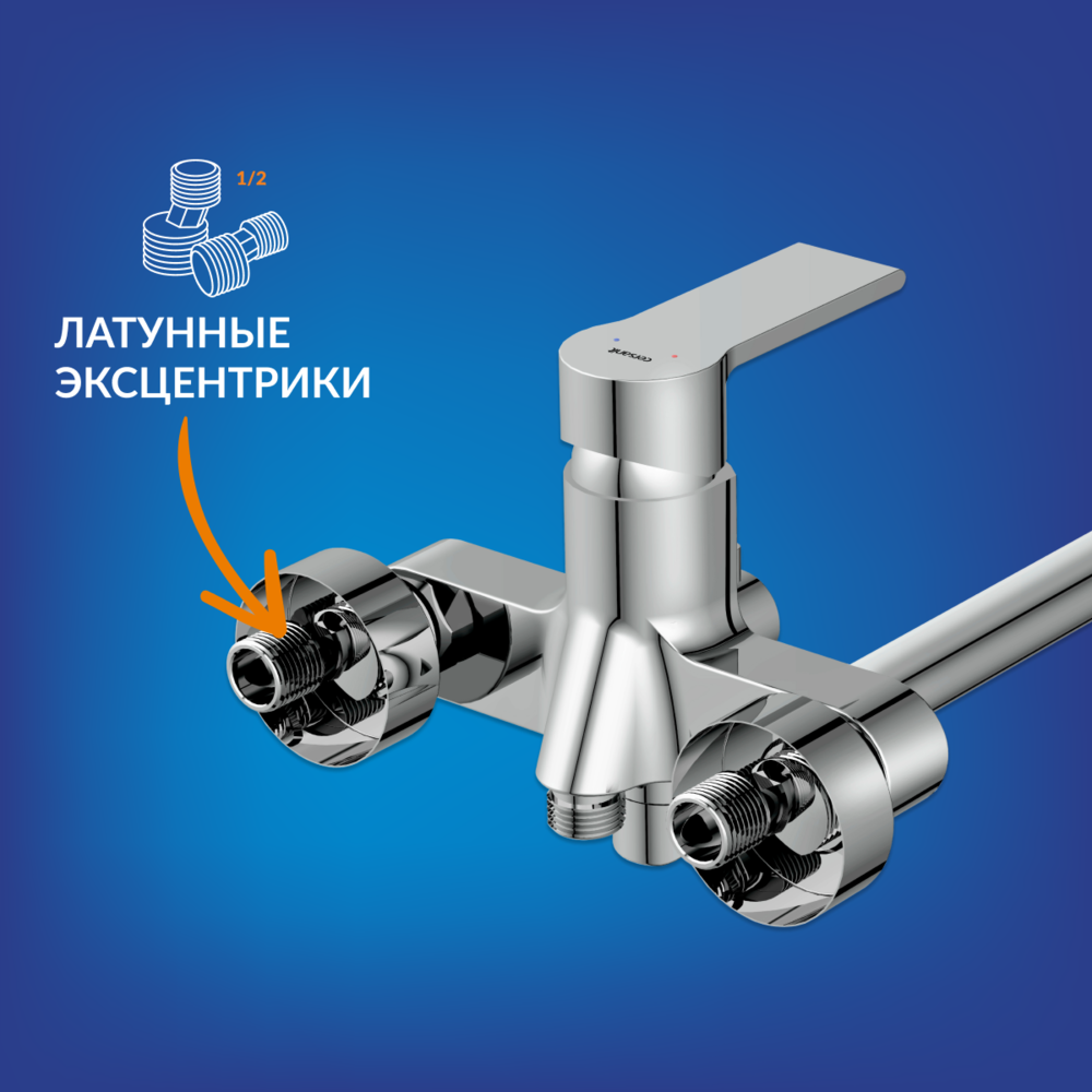 Особенность смесителя для ванны с длинным изливом BRASKO в том, что его удобно использовать одновременно в ванне и в раковине. Рычаг смесителя обеспечивает точную регулировку температуры и напора воды благодаря особенно плавному ходу. Вода подаётся с помощью удобного поворотного переключателя.