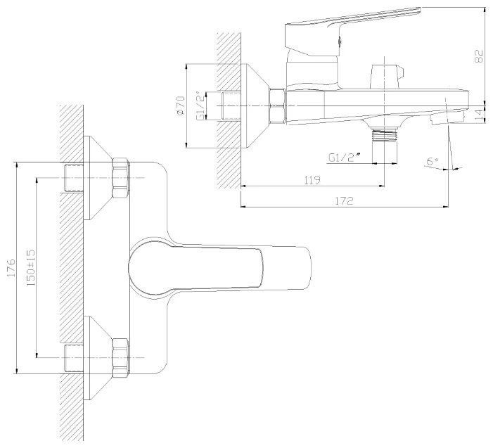 Смеситель для ванны Decoroom с ручным душем хром DR38036