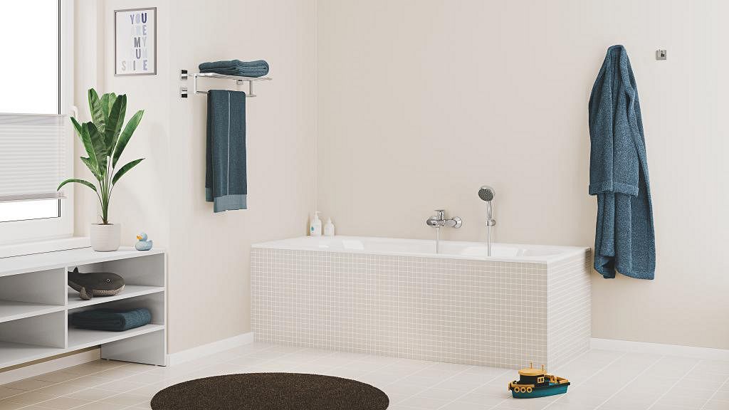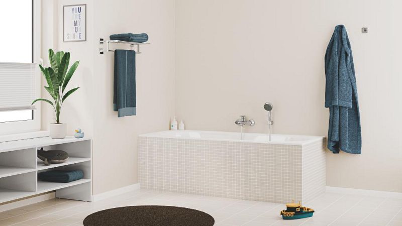 Однорычажный смеситель для ванны GROHE Start Edge — простота стиля и установки в сочетании с функциональностью, позволяющей экономить воду, для современных ванных комнат с большим количеством людей.