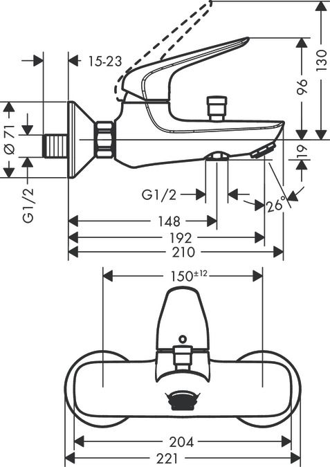 Смеситель для ванны Hansgrohe Novus 71040000 хром