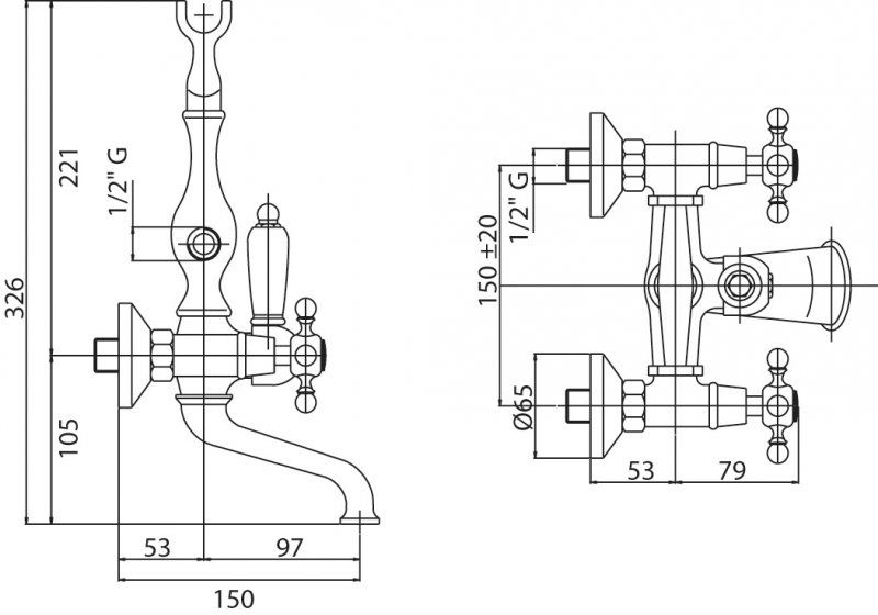 Смеситель для ванны, хром Cezares NOSTALGIA-VD-01-Bi