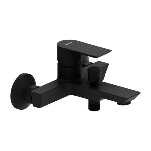 Смеситель для ванны и душа Damixa Apollo 471000300 черныйКорпус смесителя 1 шт.; эксцентрические переходники 2 шт.; декоративные розетки 2 шт.; инструкция изделия. Черный, смеситель для ванны и душа, однорычажный, латунь, керамический картридж, ручка и излив имеют плоскую форму