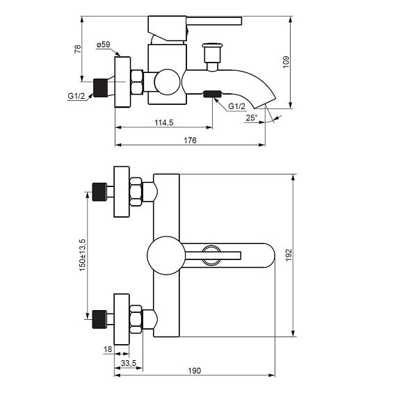 Смеситель для ванны и душа Damixa Scandinavian Pure 361000300 черный