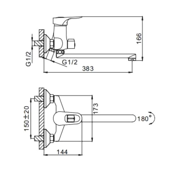 Способ монтажа:На два отверстия, Настенные
