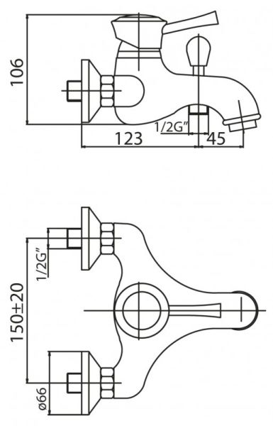 Смеситель для ванны и душа однорычажный, хром Cezares GIUBILEO-VM-01