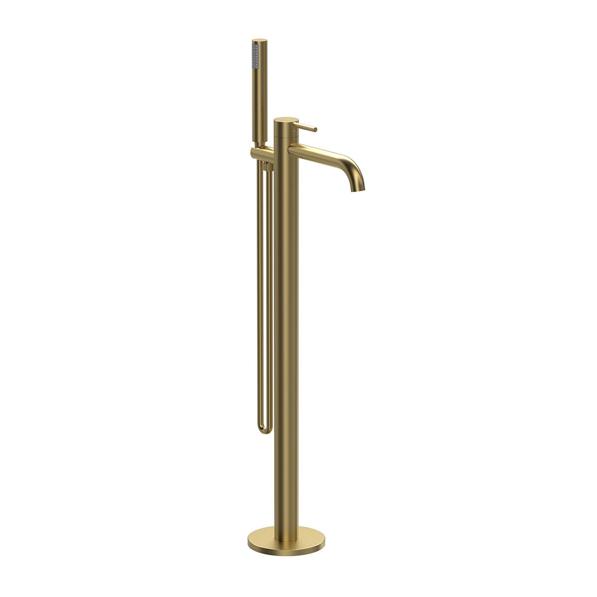 Смеситель для ванны напольный Vincea Desire VTF-1DBG однорычажный, с регулятором давления, брашированное золото купить
