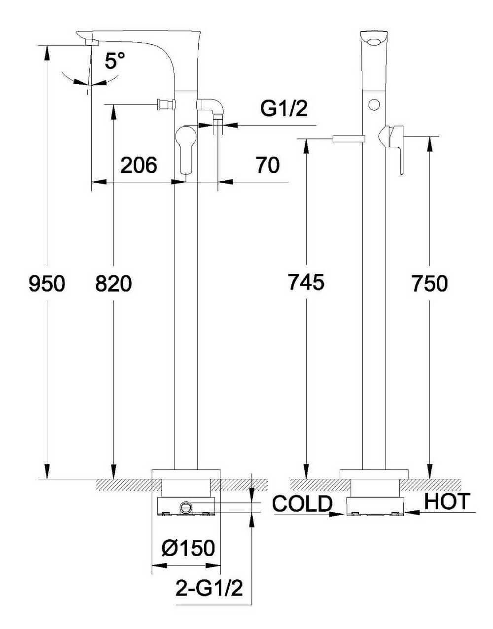 Смеситель для ванны Orans 1601KW напольный