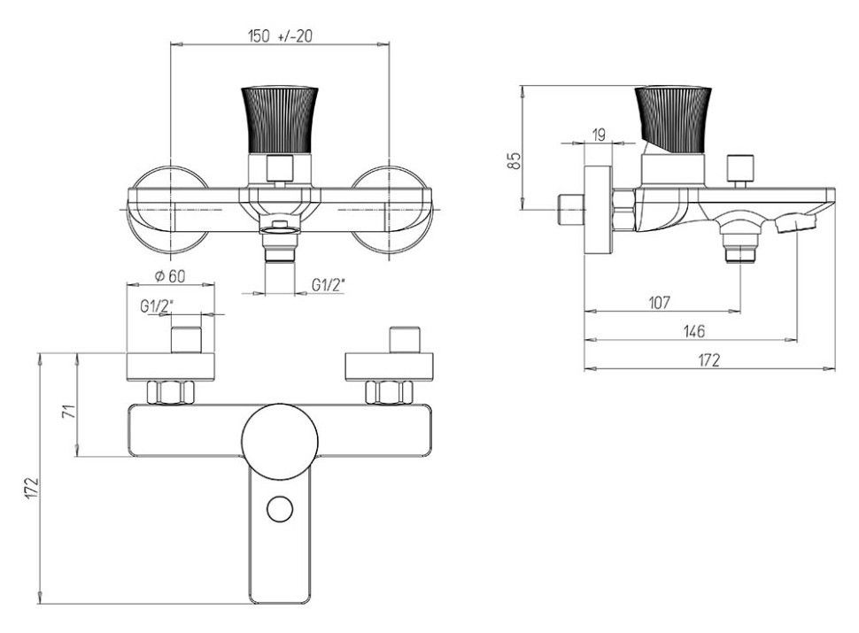 - Устойчивый к ржавчине и известковому налету корпус из латуни с технологией двойного покрытия (никелирование и хромирование) для покрытия цвета хром CR.