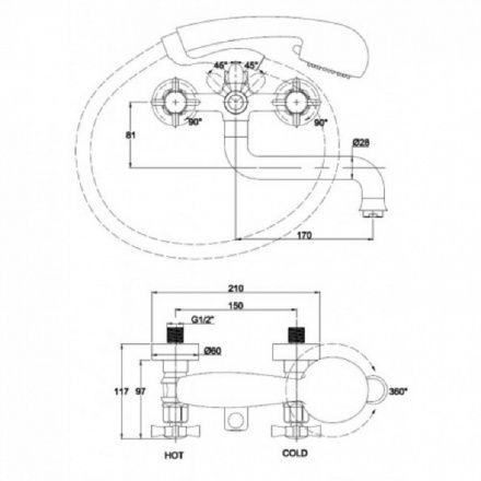 Смеситель для ванны с душем KAISER Cross 41022 купить