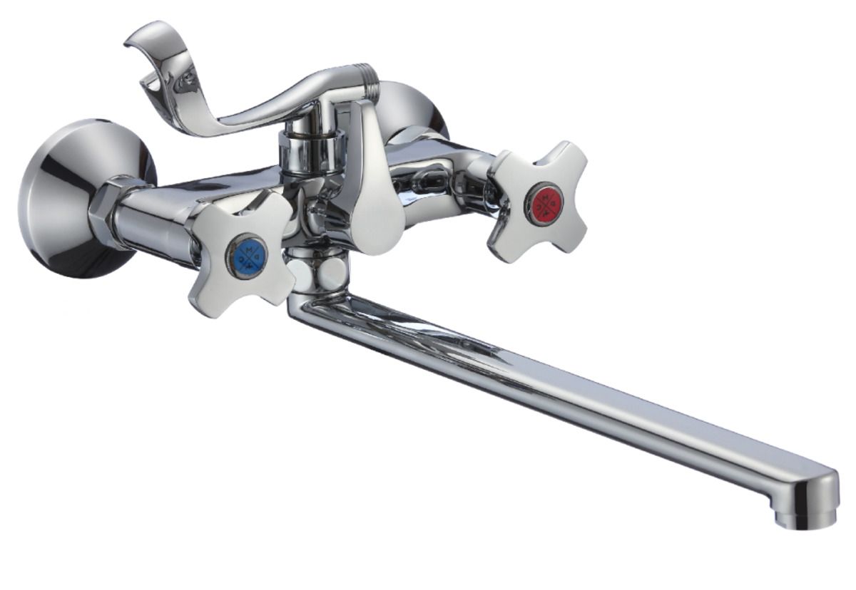 Оригинальный двуручковый смеситель для ванны с длинным изливом станет настоящим украшением ванной комнаты, подчеркнув ее собственный стиль. При производстве смесителей ТМ РМС используются только высококачественные материалы. Все модели проходят процесс гальванизации, что придает им большую износостойкость и улучшает антикоррозийные свойства. Хромированная поверхность не потеряет со временем свой изначальный вид, а уход за ней сводится к протиранию мягкой салфеткой. Установка смесителя крайне проста. Смесители РМС это сертифицированный продукт с 5-летней гарантией.В комплекте удобная лейка с гибким шлангом, настенный держатель, эксцентрики и отражатели.Смеситель для ванны с длинным изливомПоворотный прямой изливАэратор: пластиковыйПокрытие: хром
