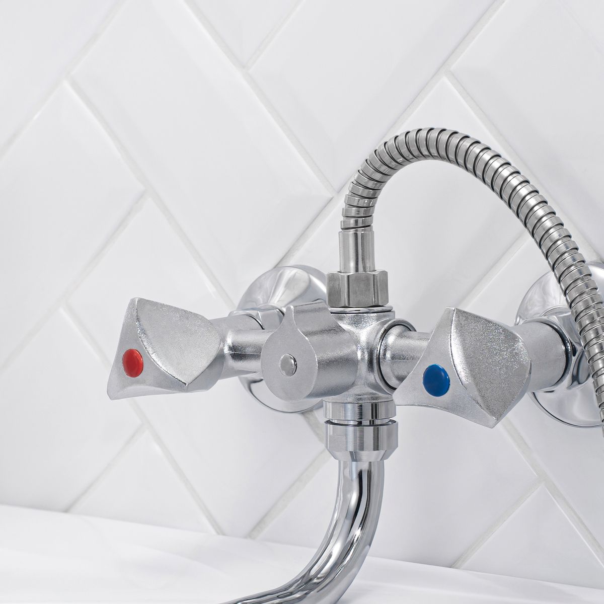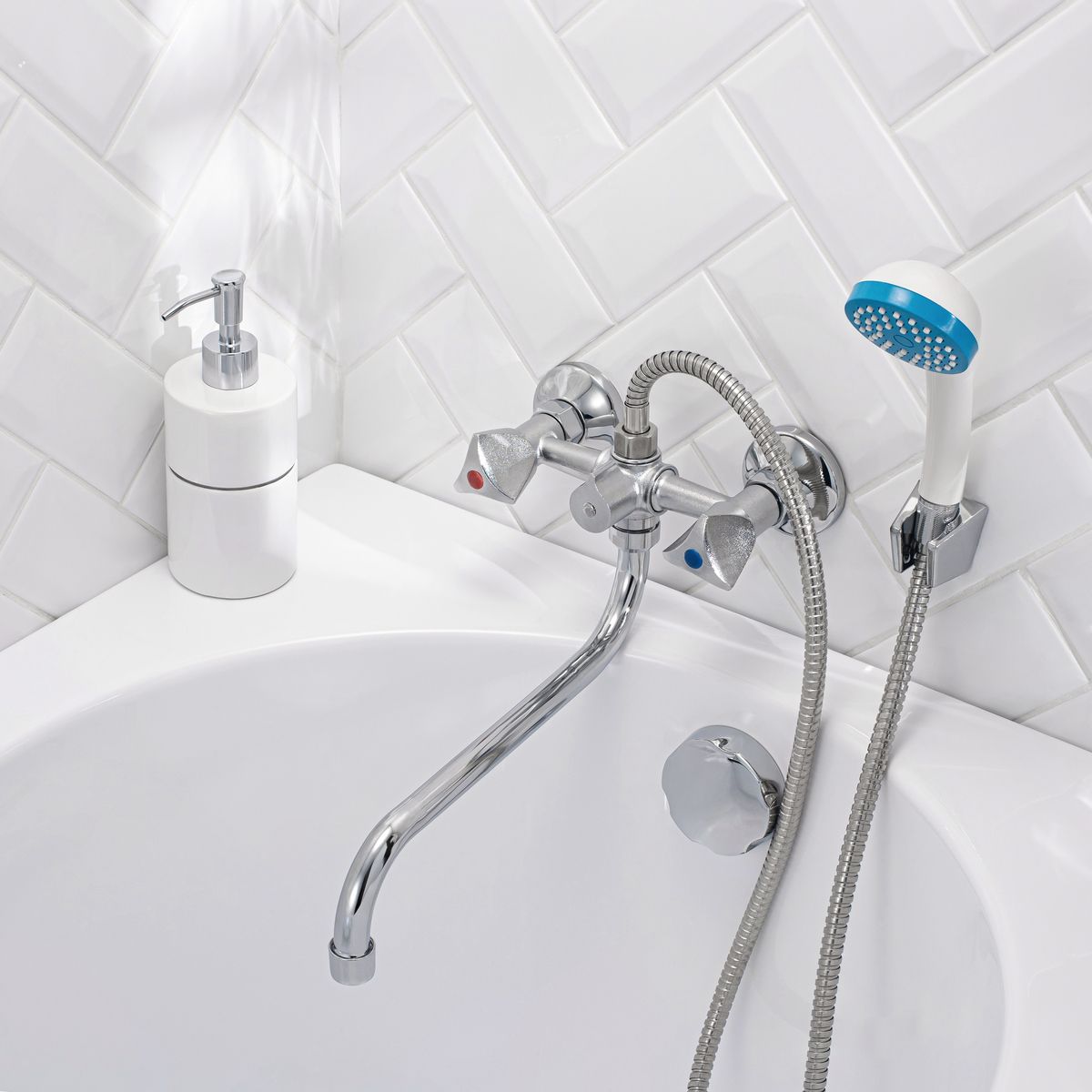 Двуручковый смеситель для ванны из данной серии обладает не отполированным хромированным корпусом и полированным длинным изливом, удобен и практичен в использовании.
