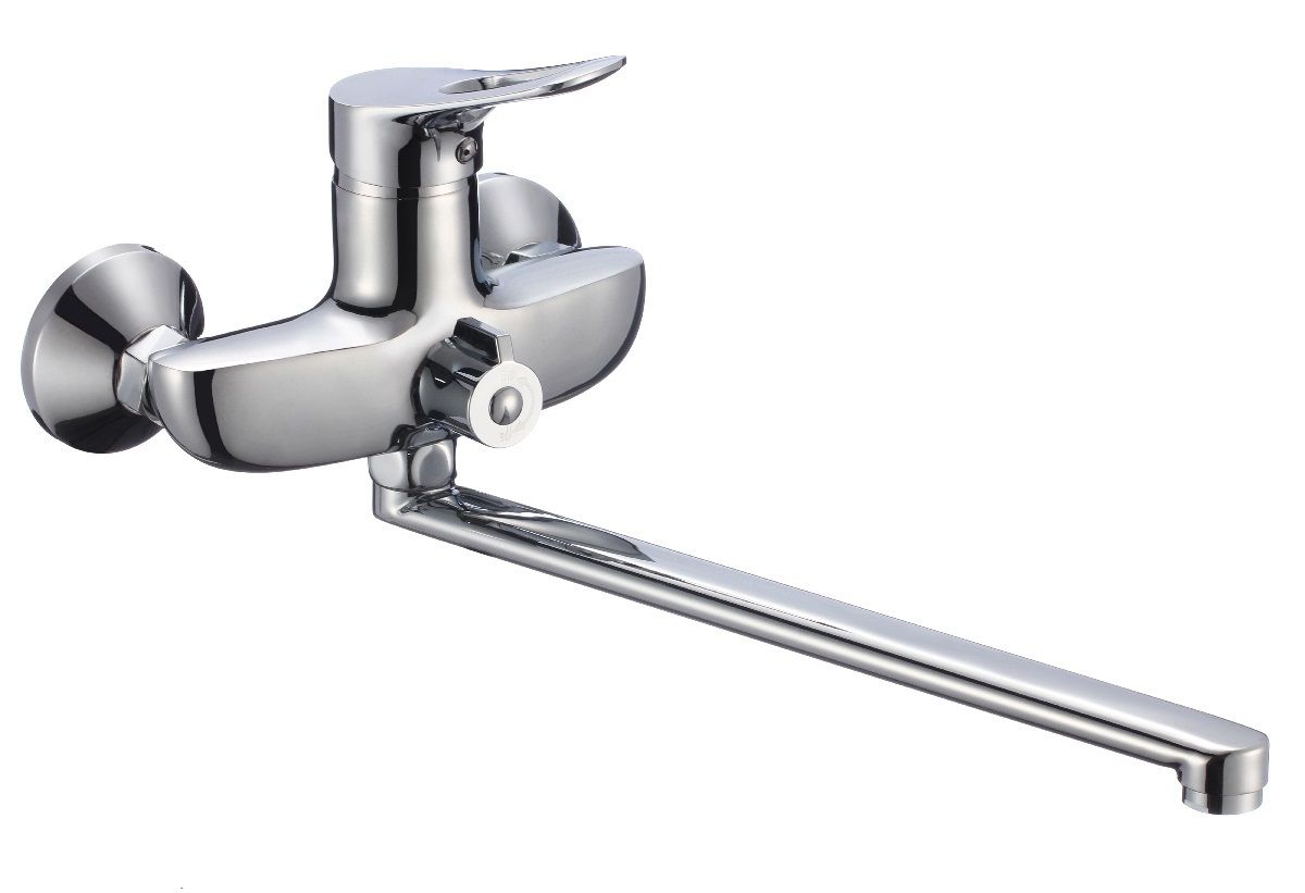 Эргономичный и стильный однорычажный смеситель для ванной комнаты. Наличие длинного поворотного излива делает модель универсальной: она используется для обеспечения водой как ванны, так и раковины, актуально в небольшом санузле.