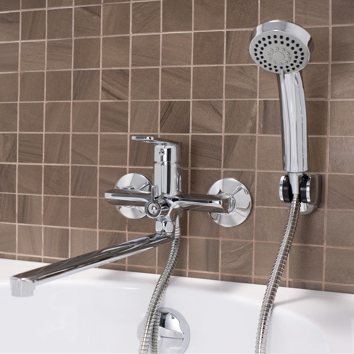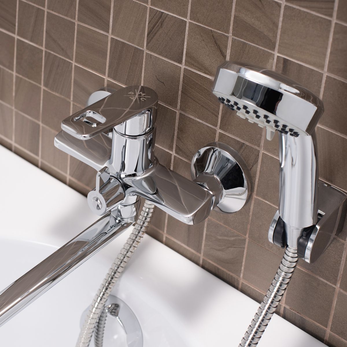 Лаконичный однорычажный смеситель для ванной комнаты с длинным поворотным изливом оптимально подойдет как для большой, так и для негабаритной ванны.