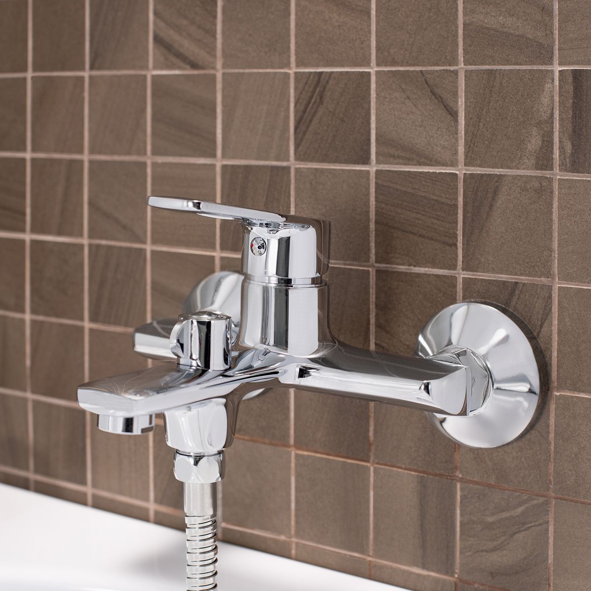 Однорычажный смеситель для ванны в классическом исполнении с практичным евро-переключением на душ. Обладает коротким фиксированным изливом, что отлично подходит для отдельно стоящей ванной.