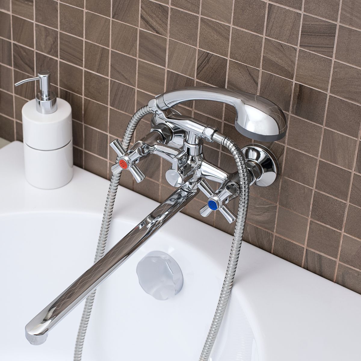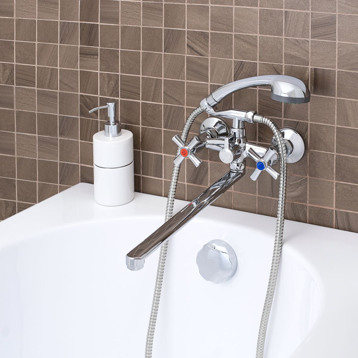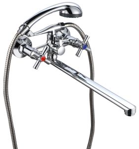 Смеситель для ванны с длинным поворотным изливом. кран-букса металлическая с керамическими пластинами, угол поворота 180 градусов.