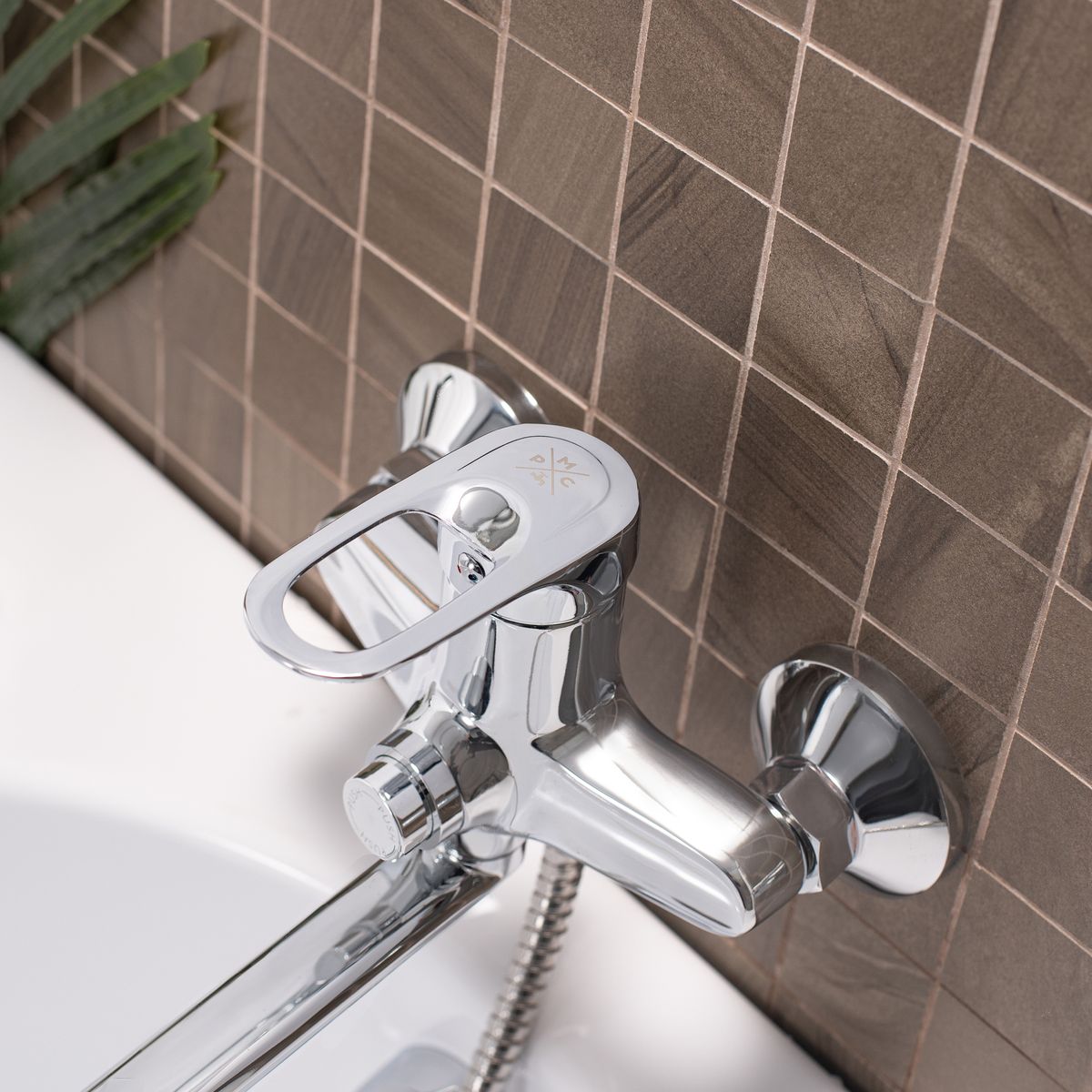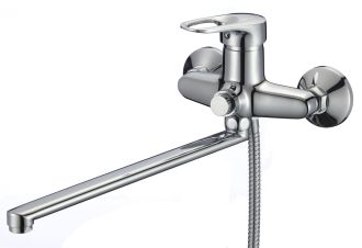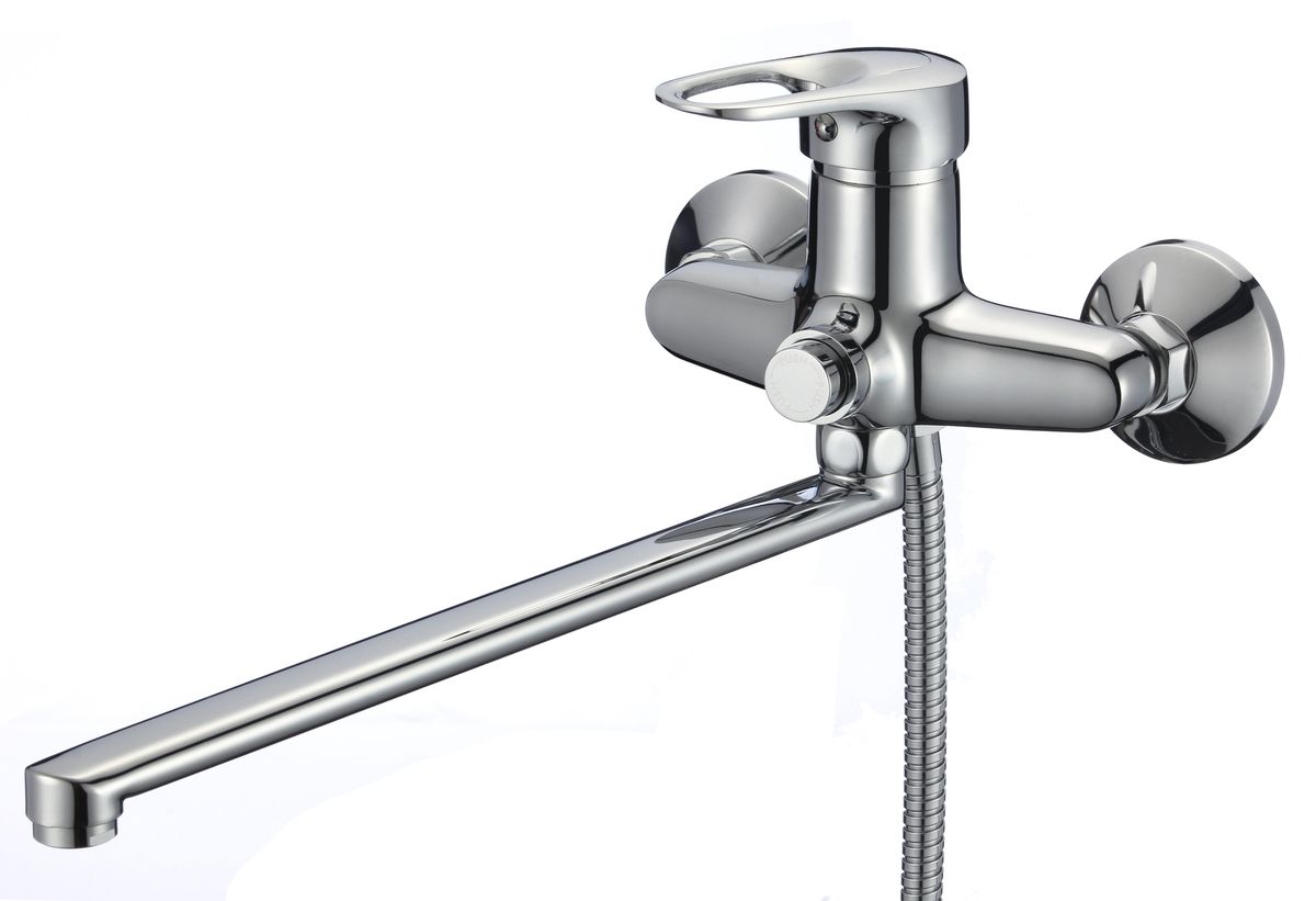 Классический настенный смеситель для ванны, это сочетание изысканных форм и надежности. Длинный поворотный излив используется для обеспечения водой как ванны, так и раковины, что актуально в небольшом санузле.