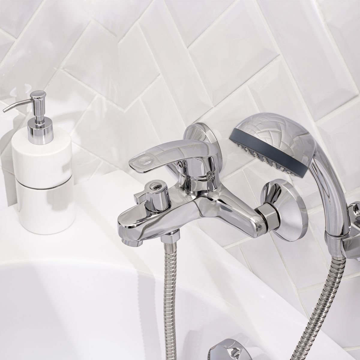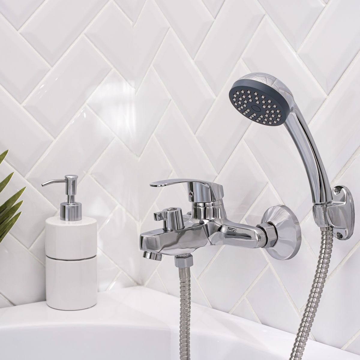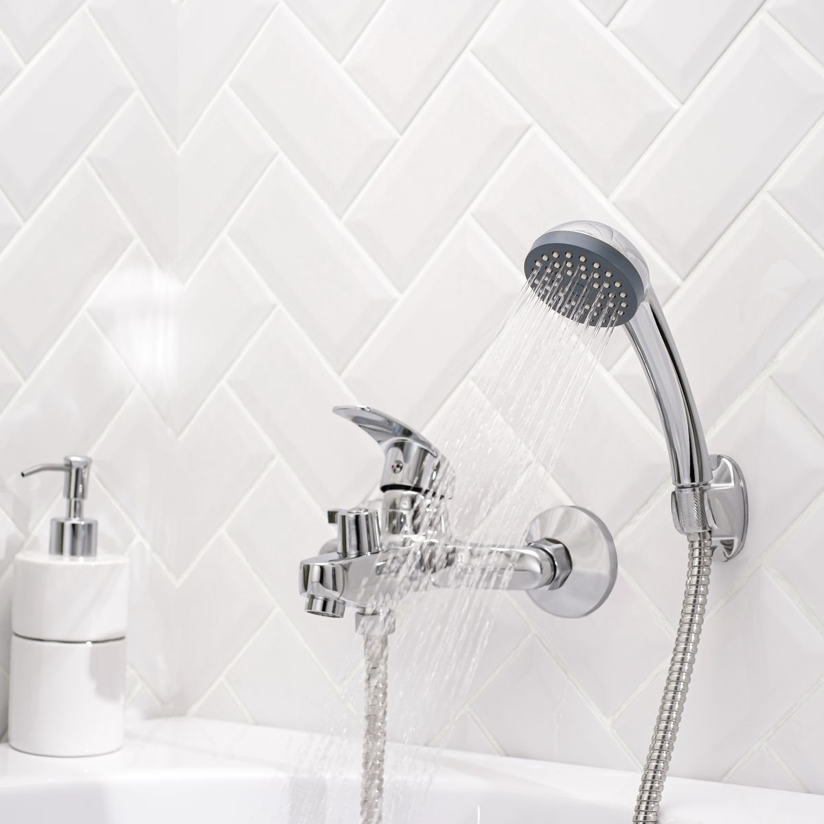 Монолитный и аккуратный однорычажный настенный смеситель для ванны станет отличным решением для отдельно стоящей ванной.