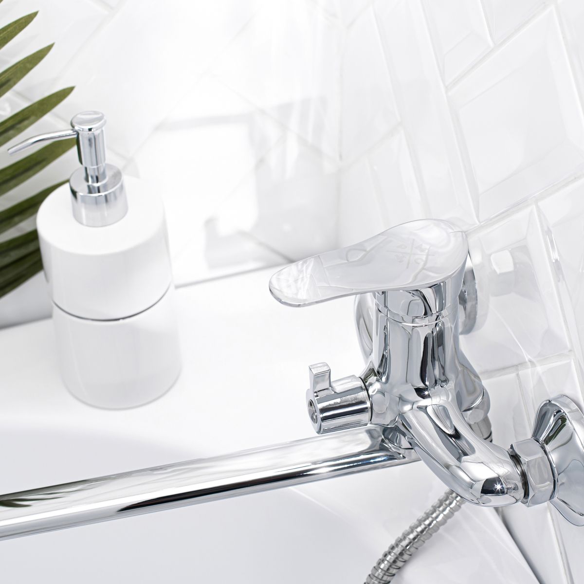 Стильный, эргономичный однорычажный смеситель для ванны с длинным изливом - это стиль и удобство в использовании на долгие годы.
