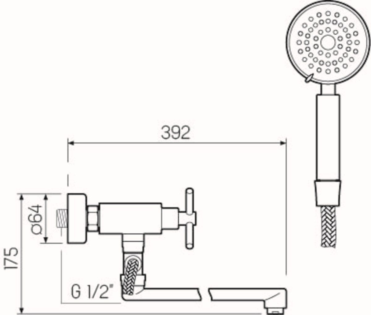 Смеситель для ванны с душем РМС SUS124-140P нержавеющая сталь