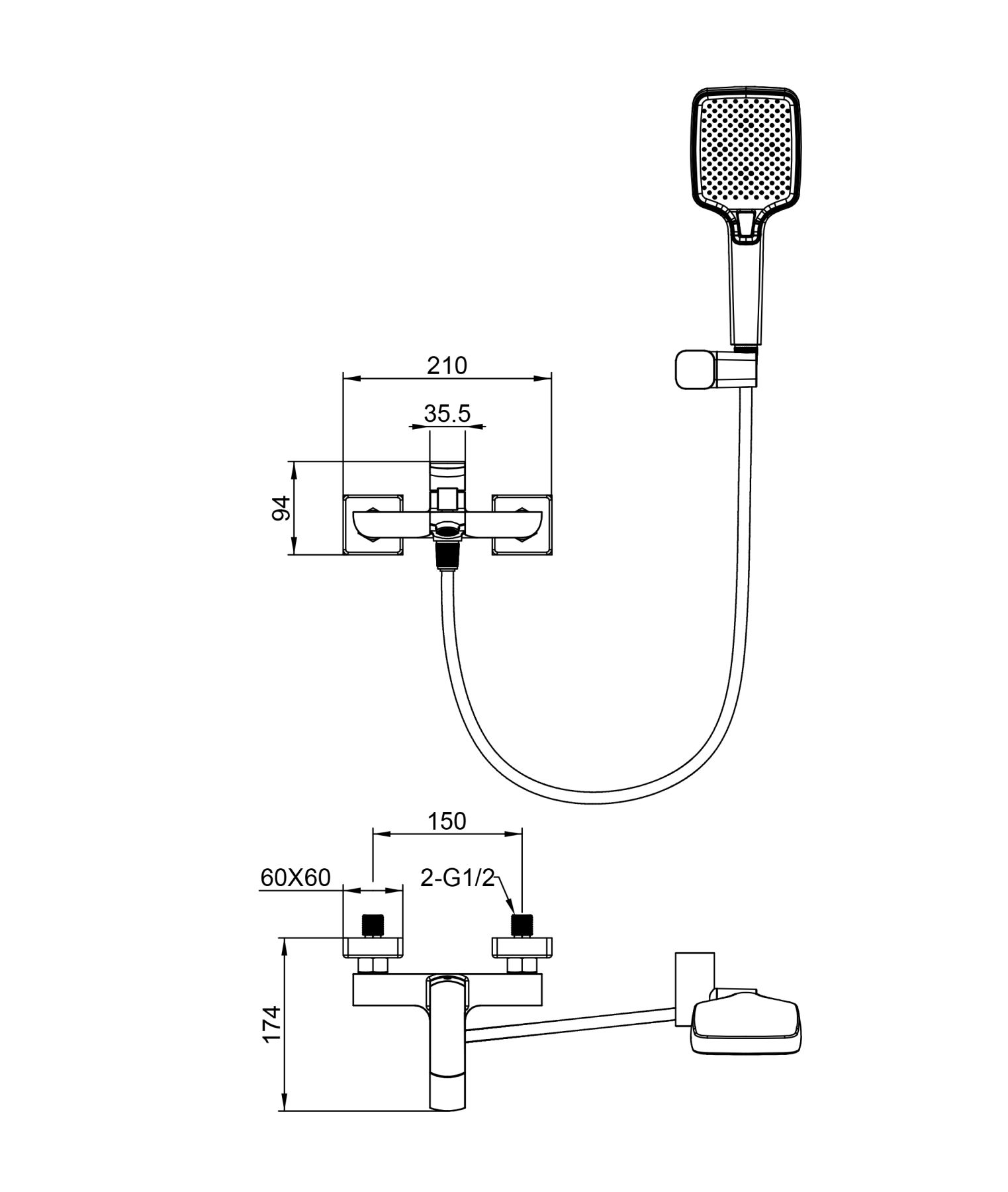 Смеситель для ванны с душем WONZON & WOGHAND FORZA, Темный графит WW-639031-1-BGM