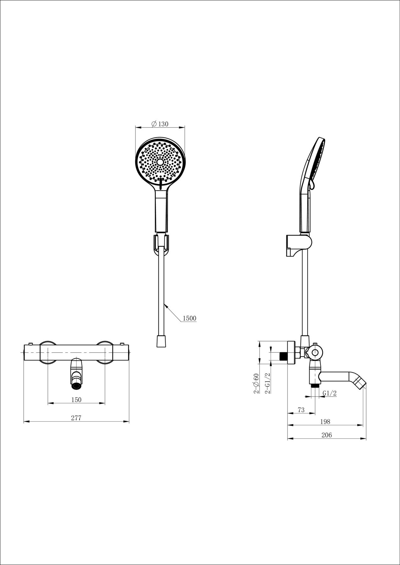 Смеситель для ванны с душем и термостатом WONZON & WOGHAND INN 3, Хром (WW-B2065-A1-CR)
