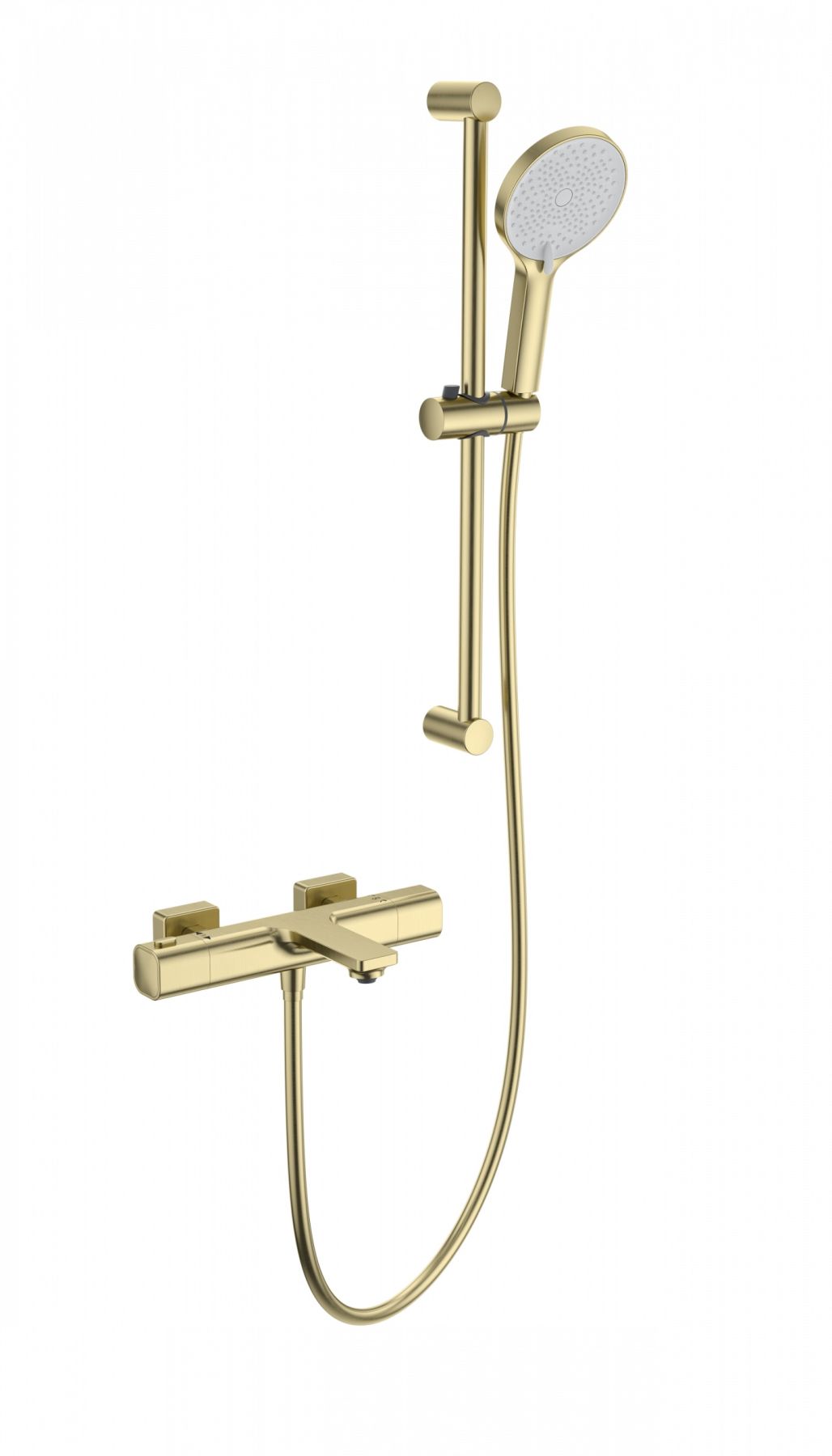 Смеситель для ванны с душевым гарнитуром и термостатом WONZON & WOGHAND SOLID, Брашированное золото (WW-C2011-A-BG)
