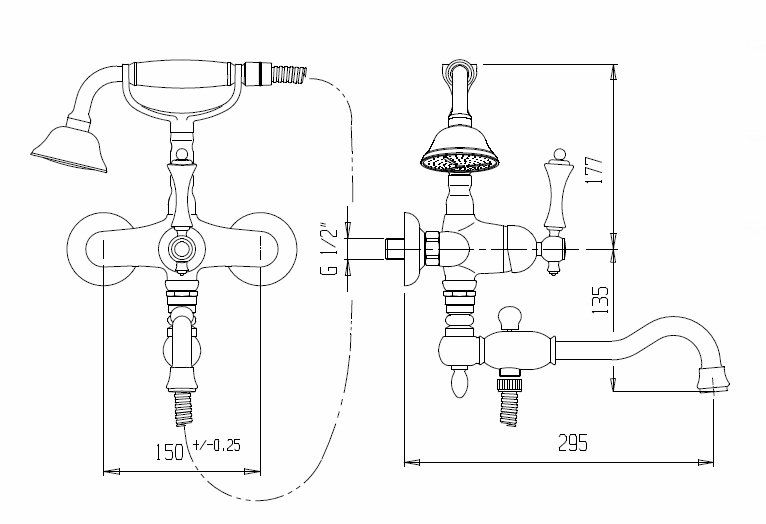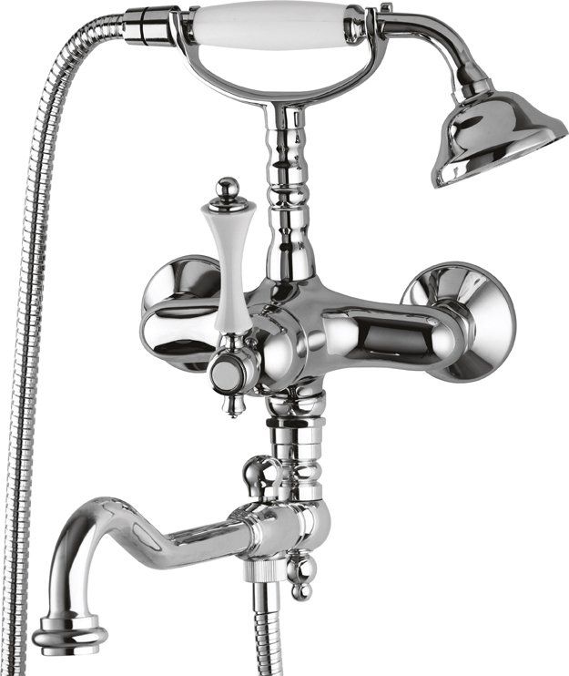 Оснащение: душевой шланг, душевая лейка, аэратор, держатель для душевой лейки, дивертор