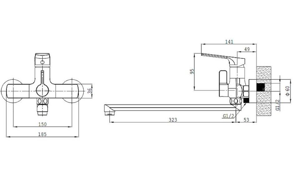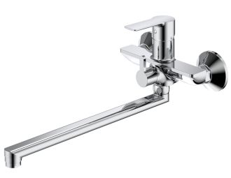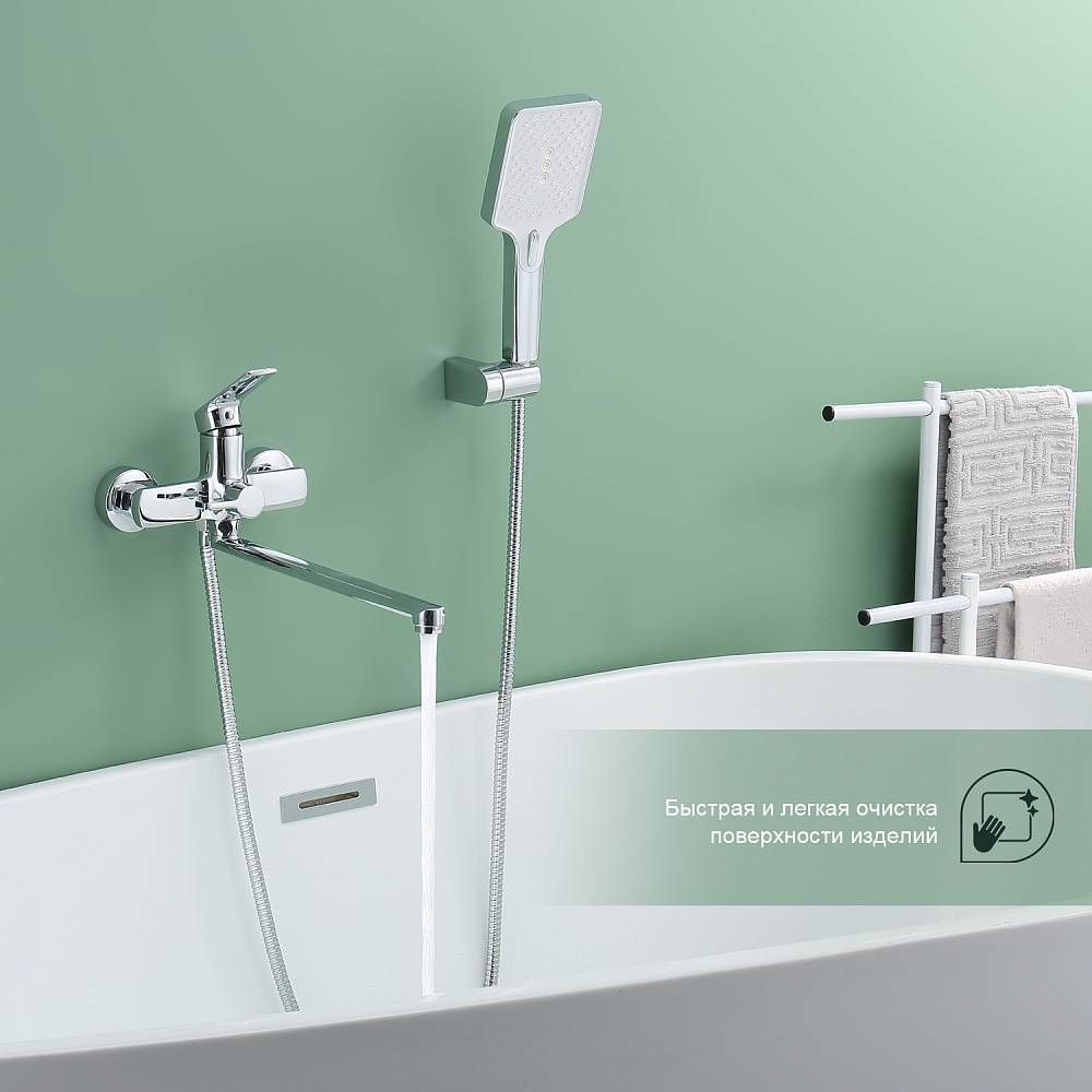 Смеситель для ванны Splenka S06.22 универсальный. Цвет: хром. Материал: латунь. Управление: однорычажное. Механизм: керамический картридж. Излив: поворотный. Стандарт подводки: G 1/2. Аэратор. Переключатель ванна/душ. Монтаж: на стену. Душевая лейка - 3 режима.