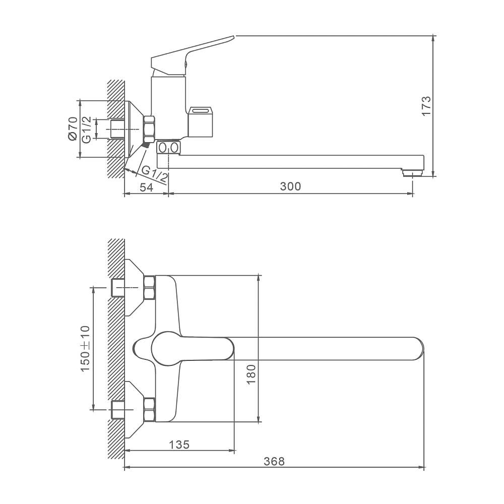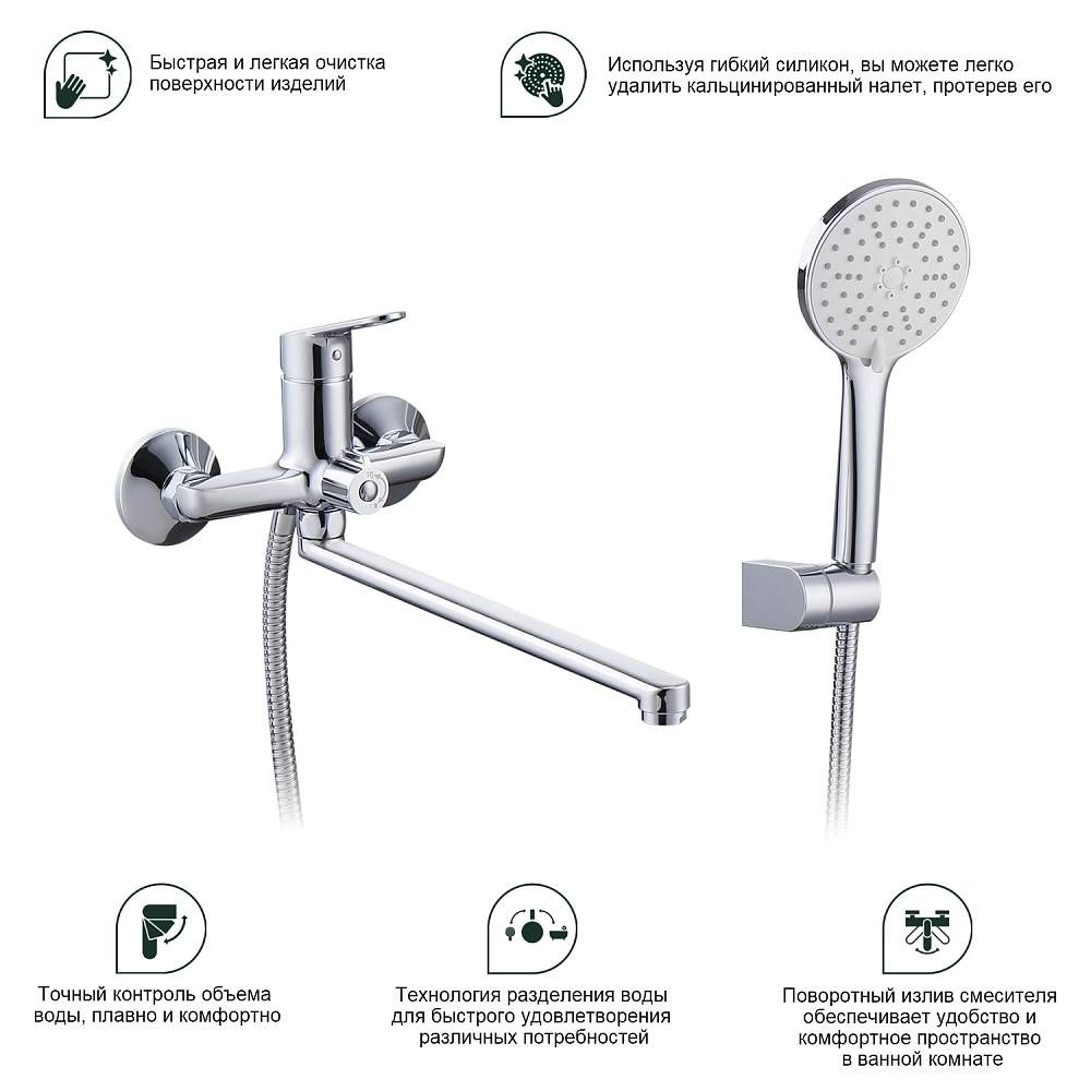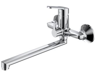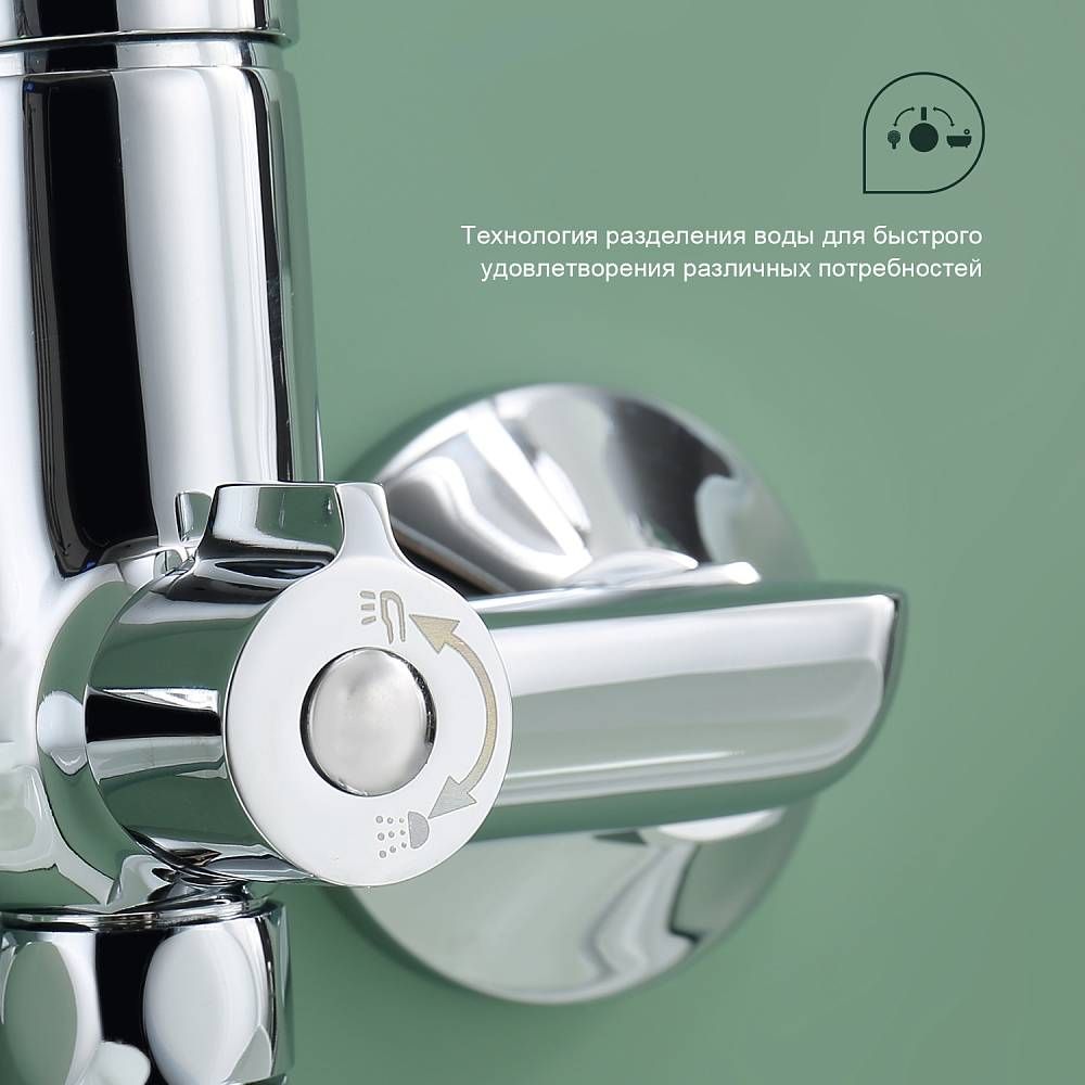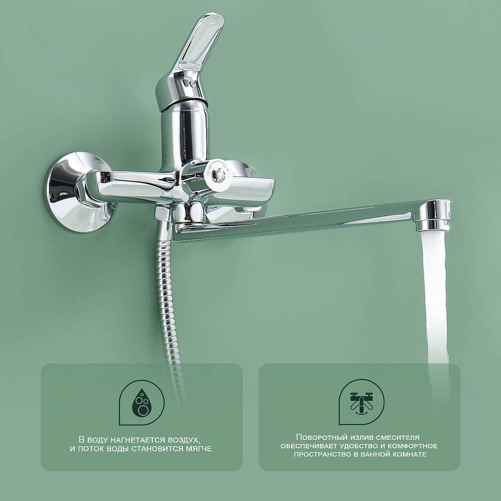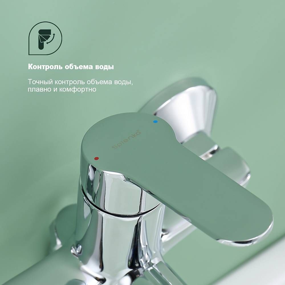 Смеситель для ванны Splenka S07.22 универсальный. Цвет: хром. Материал: латунь. Управление: однорычажное. Механизм: керамический картридж. Излив: поворотный. Стандарт подводки: G 1/2. Аэратор. Переключатель ванна/душ. Монтаж: на стену. Душевая лейка - 3 режима.
