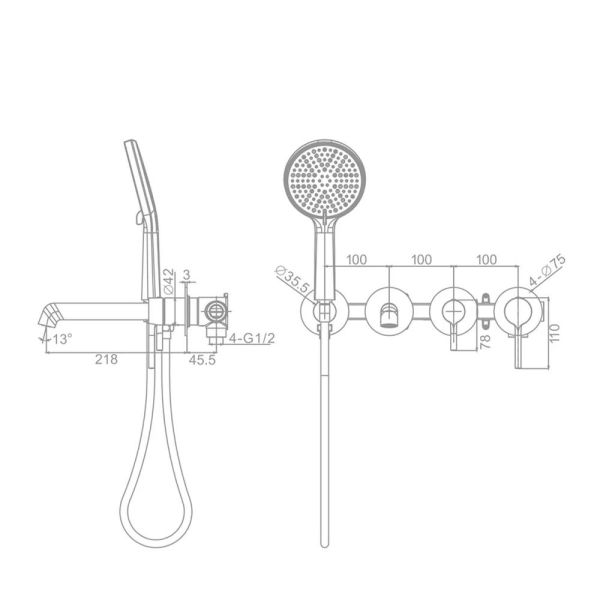 • Душевая лейка: 1-режимная функциональная лейка (нержавеющая сталь)