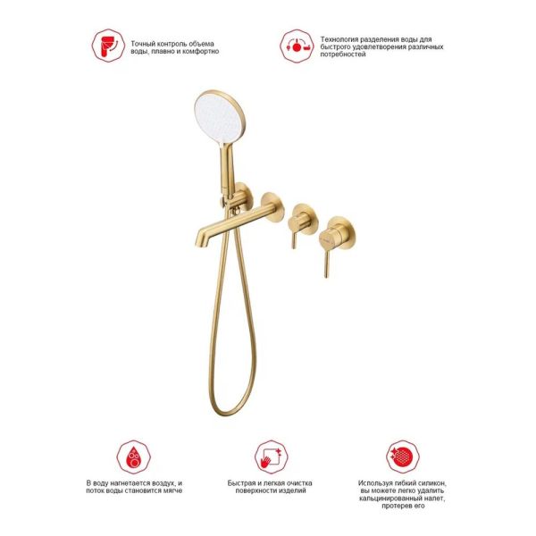 Смеситель для ванны встраиваемый Raglo R20.32.03 золотой сатин купить