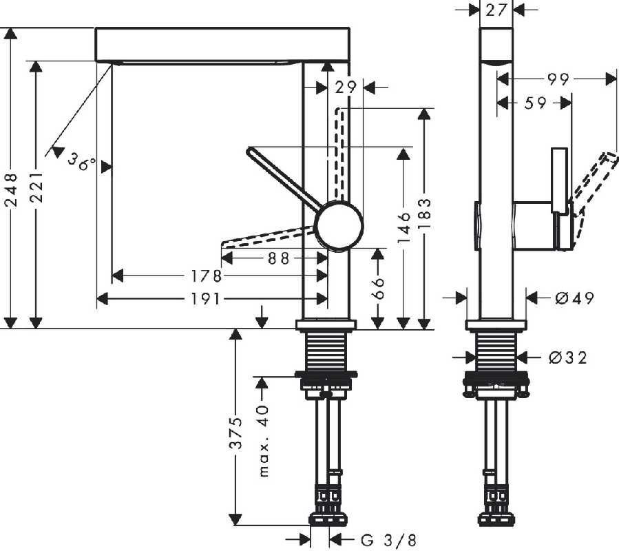 Смеситель для раковины Hansgrohe Finoris, с донным клапаном Push-Open, черный матовый, 76060670ComfortZone 230