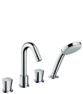 Смеситель на край ванны, на 4 отверстия Hansgrohe Logis 71314000Характеристики продукта:-выступ 111 мм-расход воды: 22 л/мин-встроенный держатель душа-со встроенной защитной комбинацией EN 1717Состоит из:-Ручной душ Croma 100 MonoКупить смеситель Hansgrohe Logis 71314000 на борт ванны Вы можете у нас на сайте Gidro-butikСкрытая часть 13244180 приобретается отдельно