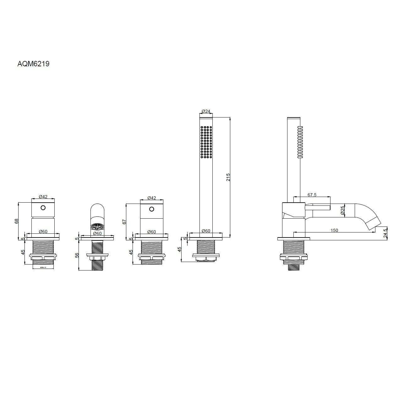 Смеситель на борт ванны AQUAme Siena AQM6219MB чёрный матовый