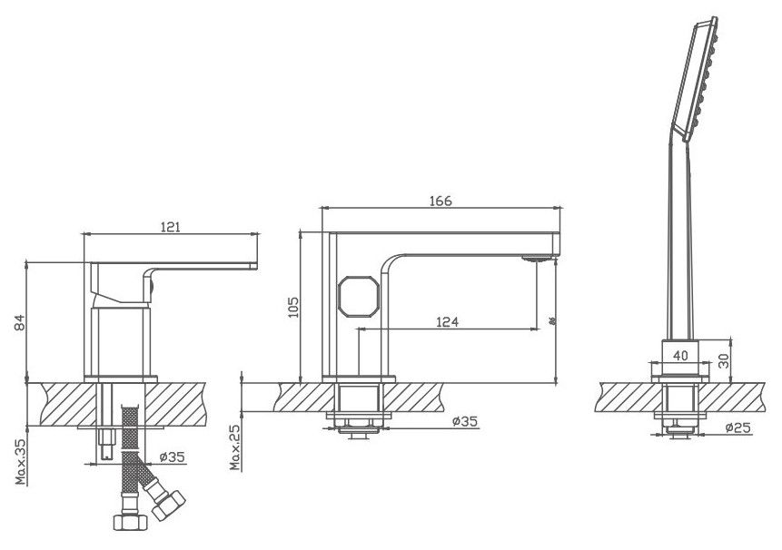 Смеситель на борт ванны Haiba.Керамический картридж 35 мм.Душевой гарнитур в комплекте.