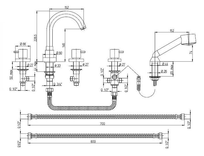 Смеситель на борт ванны Paini Cox 78CR109 хром