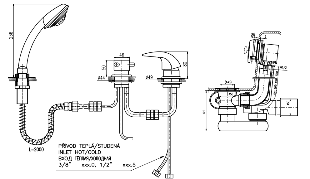 Смеситель на борт ванны Rav Slezak Dunaj D464.5/NP1/570 хром