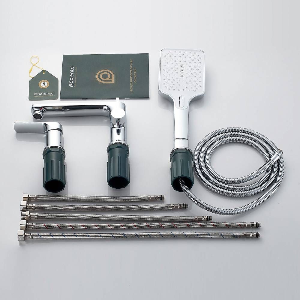 Смеситель на борт ванны Splenka S30.31. Цвет: хром. Материал: латунь. Управление: однорычажное. Механизм: керамический картридж. Излив: фиксированный. Стандарт подводки: G 1/2. Тип подводки: гибкая. Количество режимов струи ручного душа: 3. Монтаж: на борт ванны.