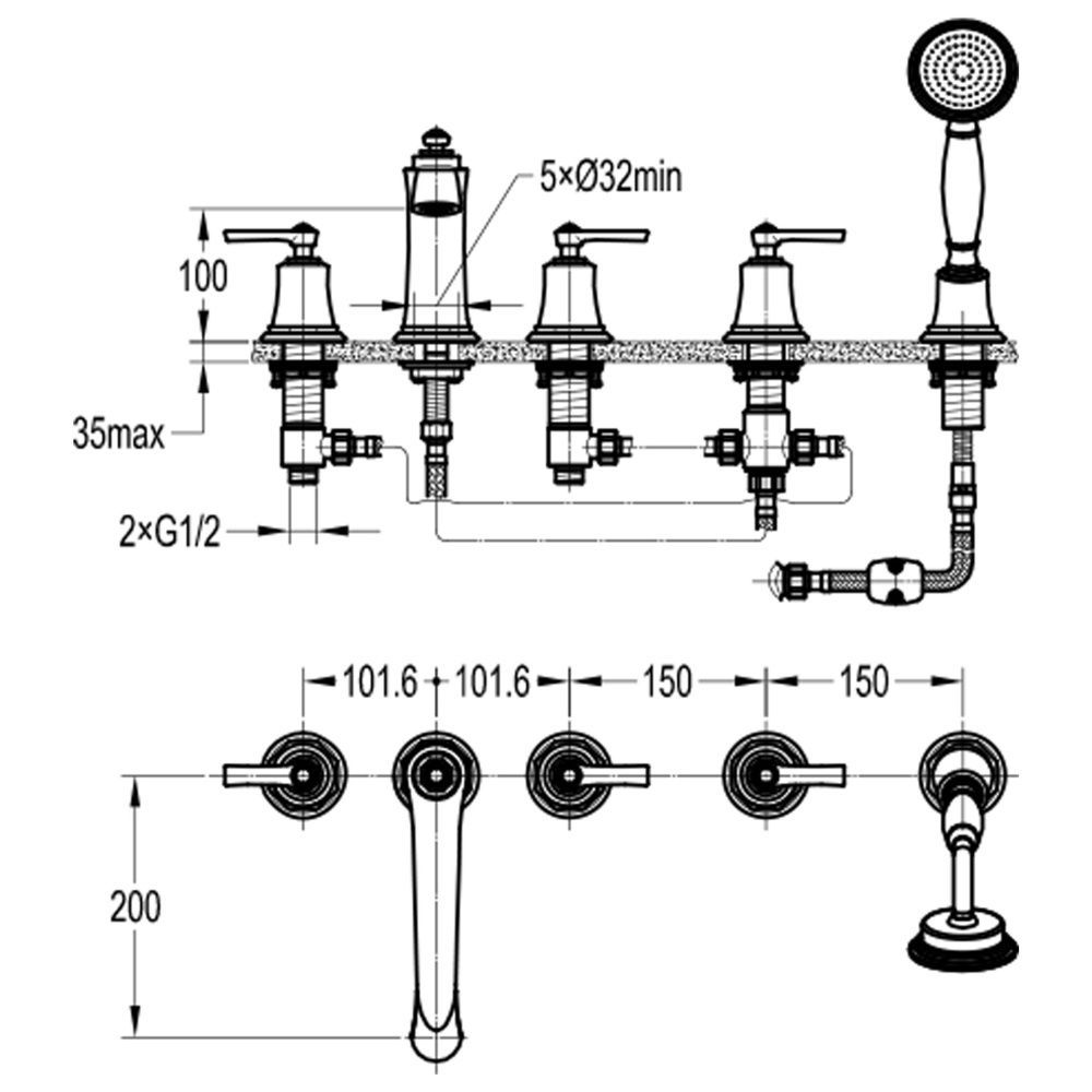 Смеситель на борт ванны Swedbe Terracotta Art 2508 на пять отверстий бронза купить