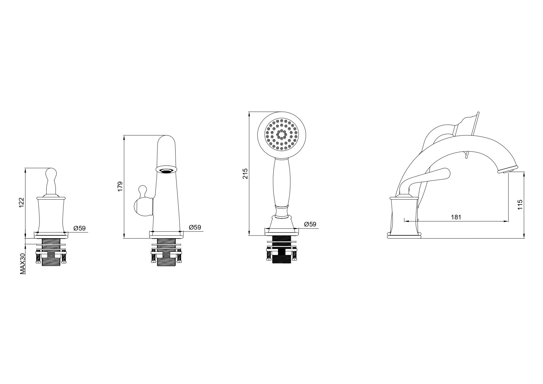 Смеситель на борт ванны Wonzon & Woghand Steam WW-88659008-BGM тёмный графит купить