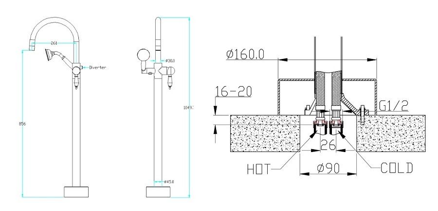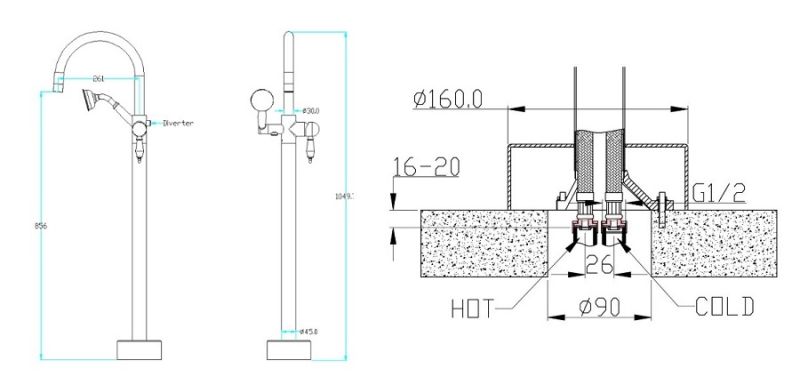 Смеситель напольный Boheme BRILLANTE SW BLACK_Комплект хром