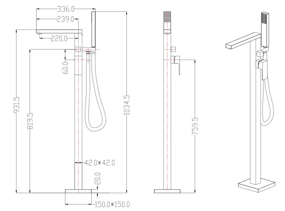 Смеситель напольный Groсenberg GB800 Черный матовый купить